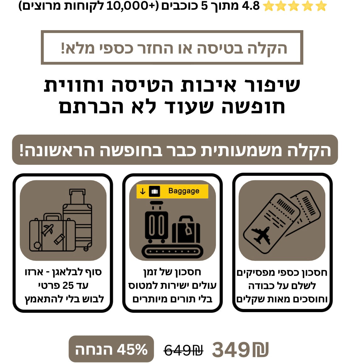 חיסכון מצטבר של מאות שקלים בכל טיול – במיוחד בטיסות לואו-קוסט וחברות שמחייבות תשלום נוסף על כל מזוודה.